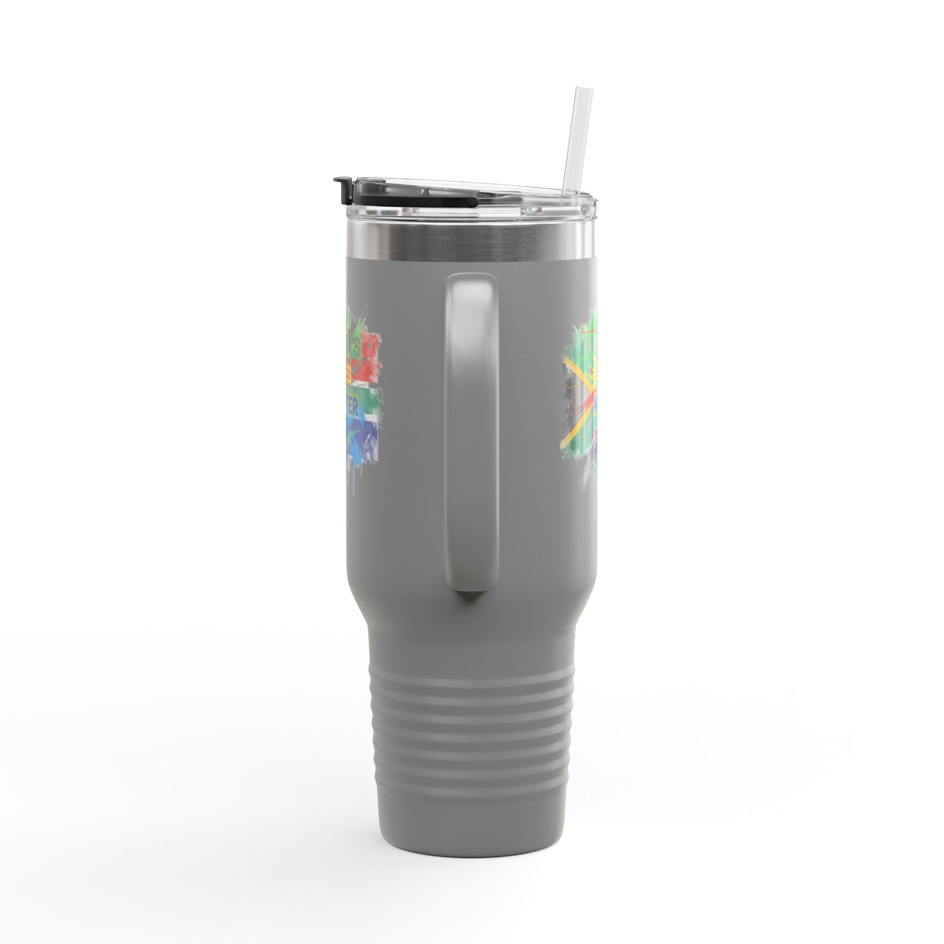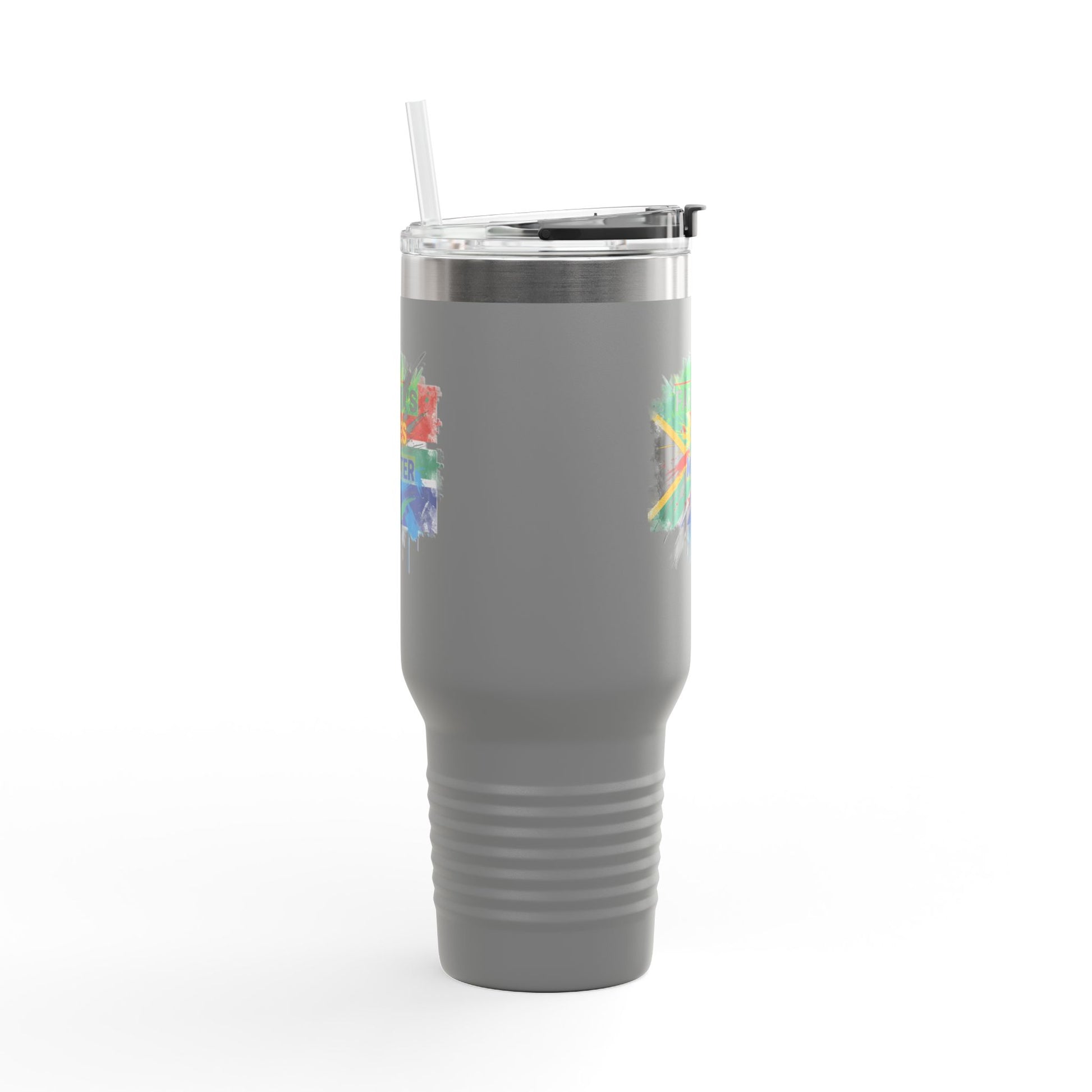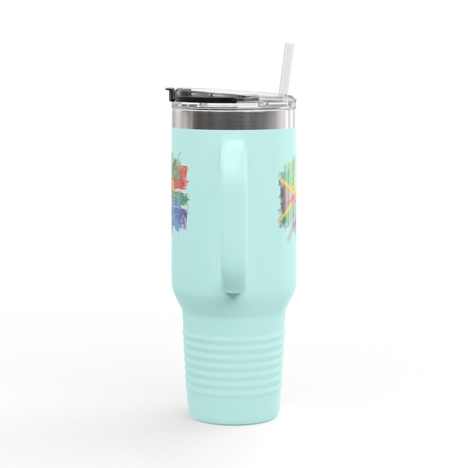 Warm, sturdy, and built to go the distance — this 40oz insulated travel mug keeps coffee steaming on early field rounds and iced drinks cold through long workdays. The rugged stainless-steel body and double-wall construction lock in temperature, while the ergonomic handle and slip-resistant base make it easy to carry across muddy yards or from pickup to porch. A secure, leak-resistant lid with straw and an easy latch let you sip on the move without worrying about spills. The powder-coated finish and vibrant UV-DTF print add personality that stands up to daily use. Bring it to harvest mornings, market runs, or weekend drives — it’s designed for people who spend more time doing than waiting.